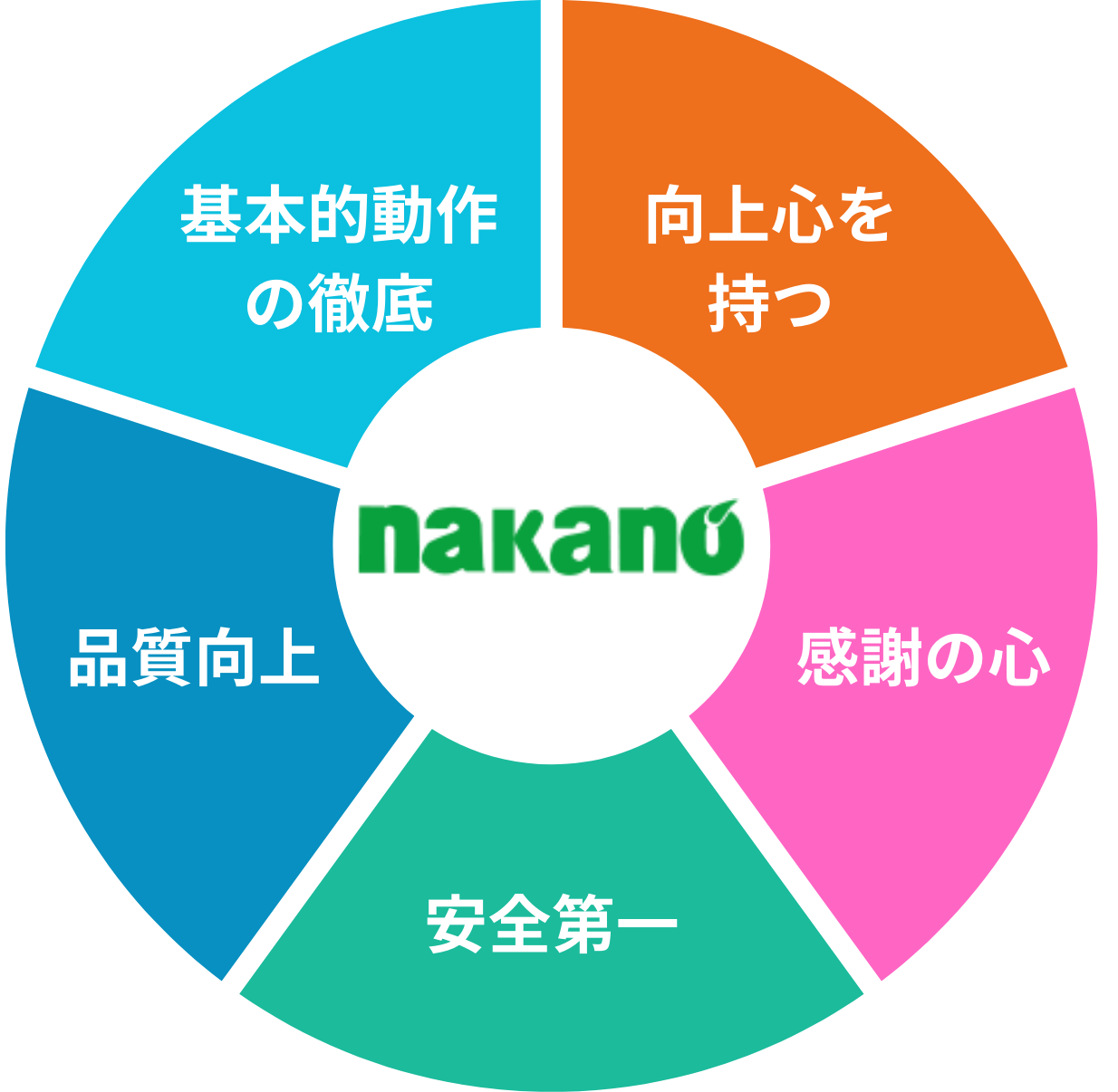 当社の理念は、(1)基本動作の徹底 (2)安全第一 (3)品質向上 (4)向上心を持つ (5)感謝の心です。